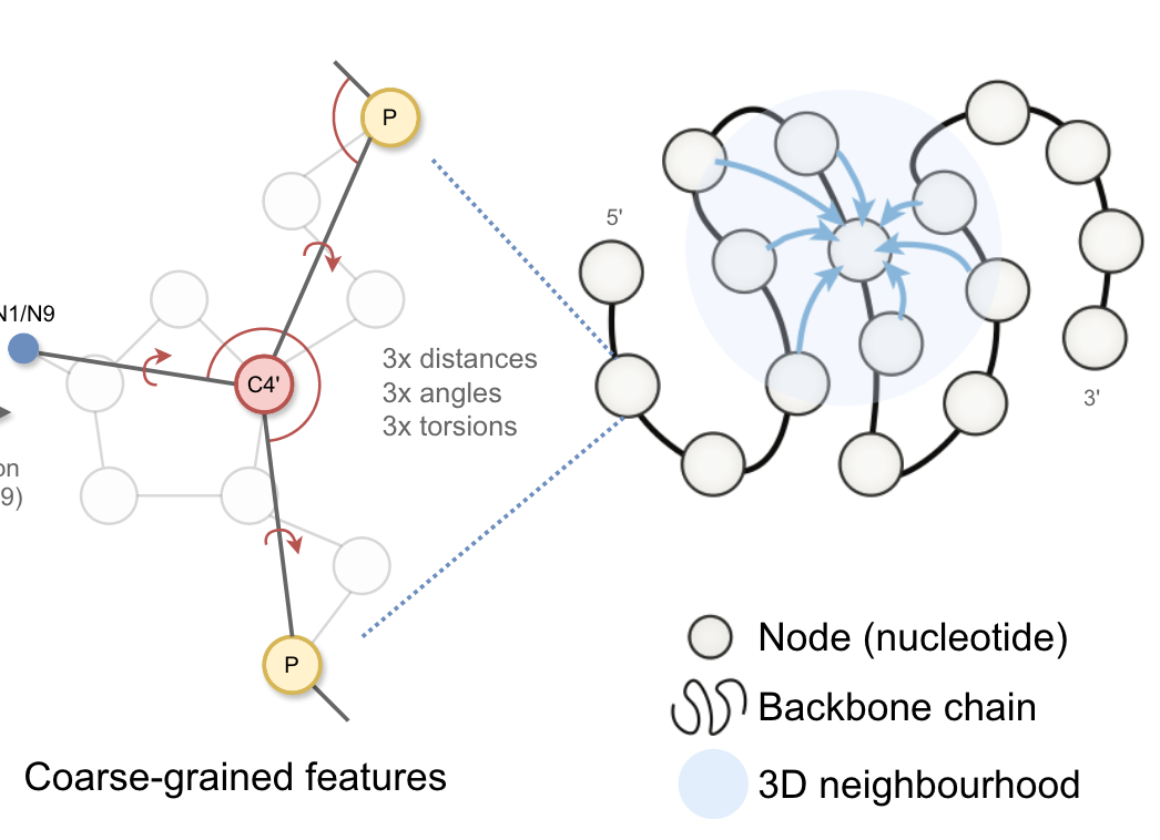 One of the projects back from our job-proposal is to develop AI models such as Graph Neural Network for RNA 3D structure characterization, based on which we can combine our physical models to predict RNA 3D structure from sequence or design RNA sequence from bacbone structures.